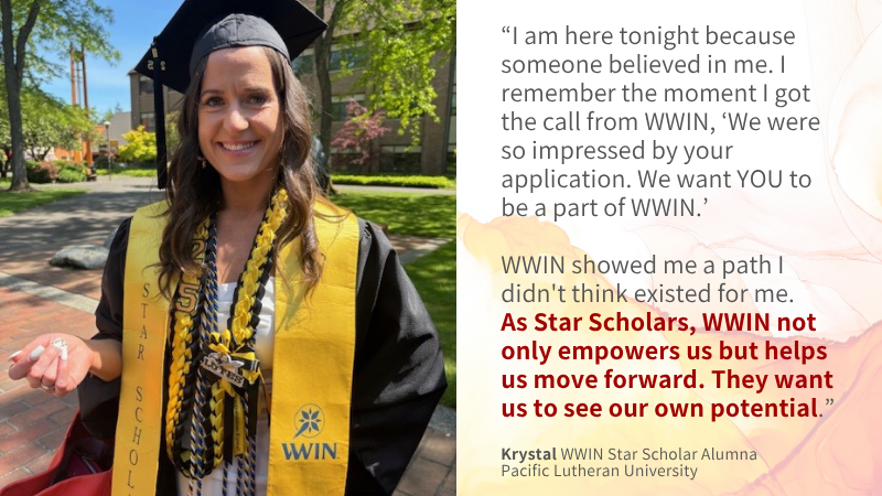 On Saturday, October 25, nearly 200 supporters gathered to celebrate the excellence of 600+ Star Scholars and alumnae and the community that makes WWIN’s work possible. Together, we raised more than $361,000 (and counting) to continue offering women the freedom to pursue college and career paths that unlock their power, and in turn, make Washington stronger and our world better.